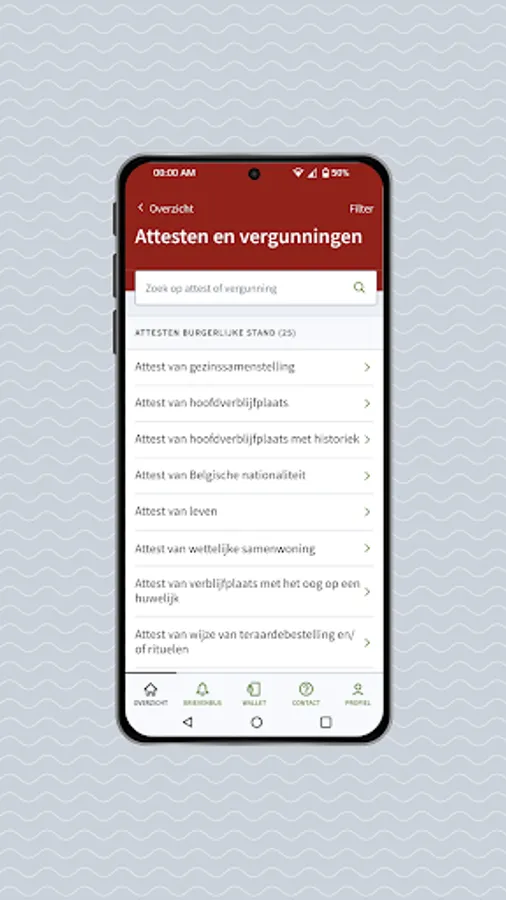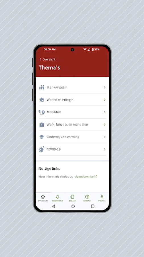 All functionalities of the general app My Citizen Profile of the Flemish government can also be found in the version of Wingene.