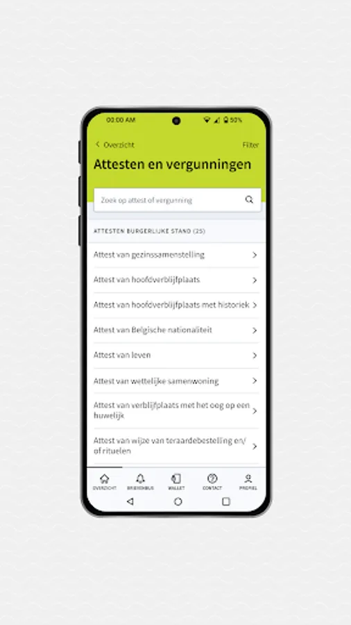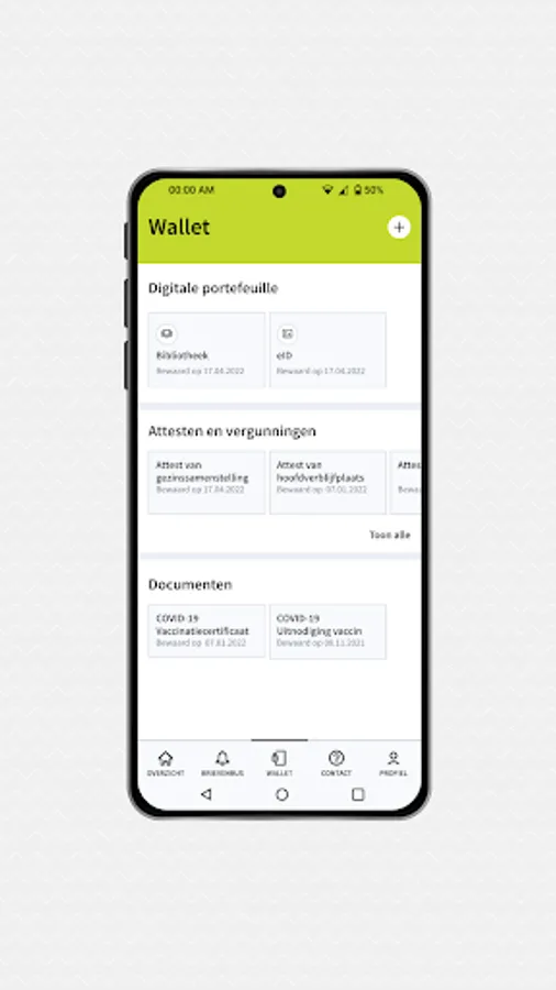 All functionalities of the general app My Citizen Profile of the Flemish government can also be found in the Zedelgem version.