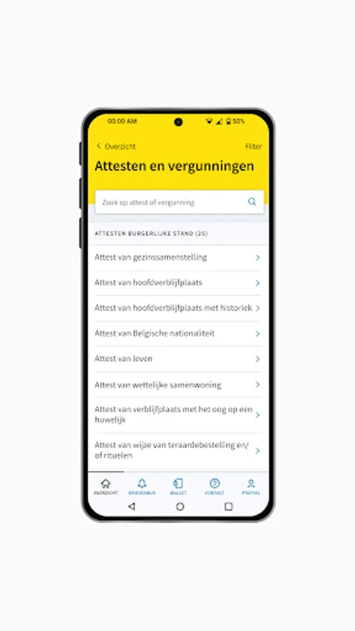 All functionalities of the general My Citizen Profile app of the Flemish government can also be found in the Zemst version.