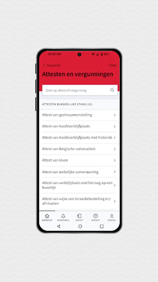 All the features of the general My Citizen Profile app from the Flemish government are also available in the Zwevegem version.