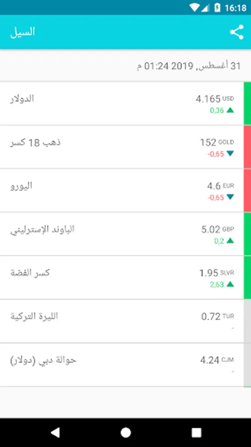 Al-Sail application allows you to track the exchange rate of the Libyan dinar in the market of the city of Tripoli.