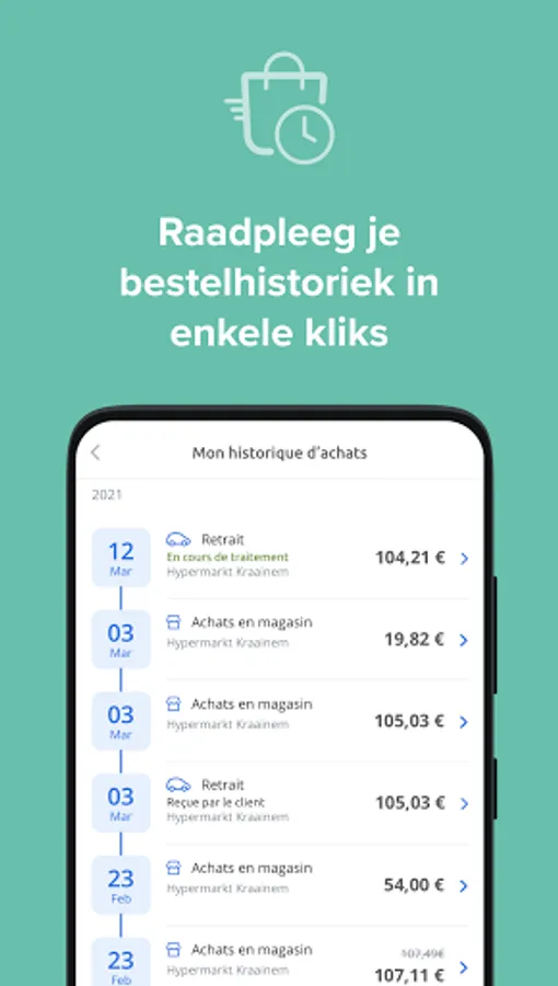 - Your purchase history to easily find everything you have bought from Carrefour and invoices