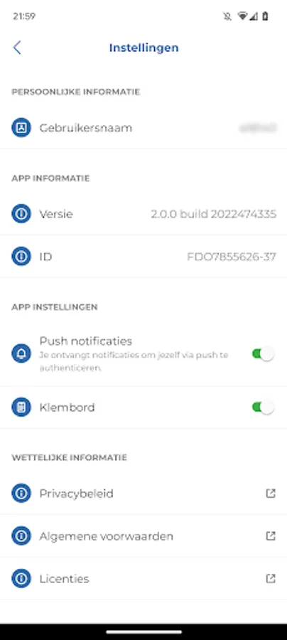 OTP stands for 'One Time Password'. With the OTP app you generate a unique password that is valid for 32 seconds. You call up this password with a personal pin code or your fingerprint. The identification method depends on the capabilities of your device.