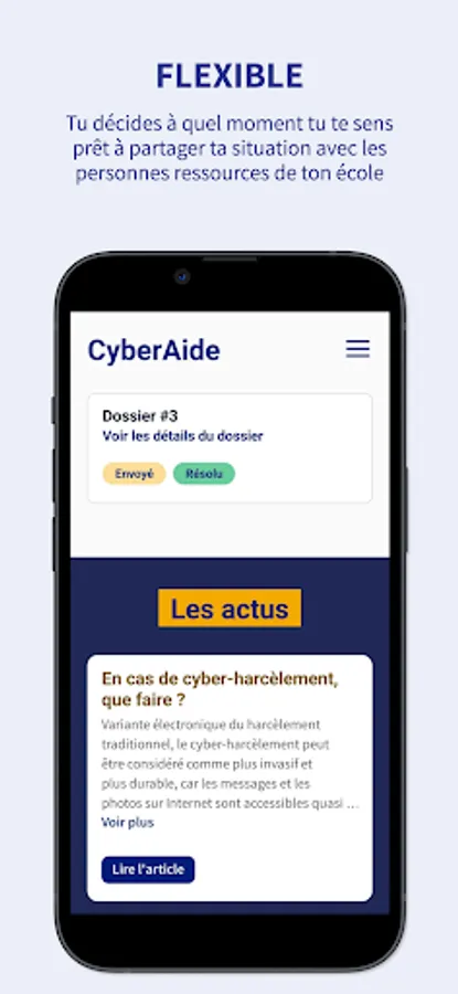 Do you need help or are you witnessing a bullying situation? Use the CyberAide application to get in touch with resource people at your school and put an end to this situation.
