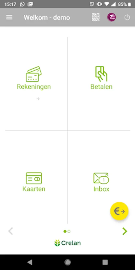 - Access to the 'Inbox' where you can read all the messages you receive in Crelan-online