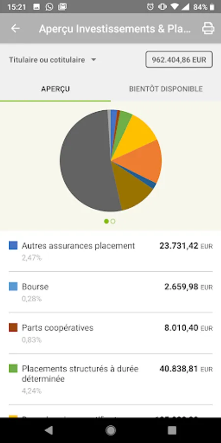 - 'Fast saving' in order to transfer quickly and easily an amount from your current account to a designated savings account.