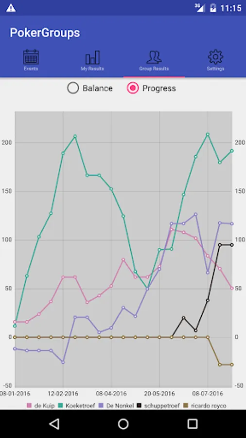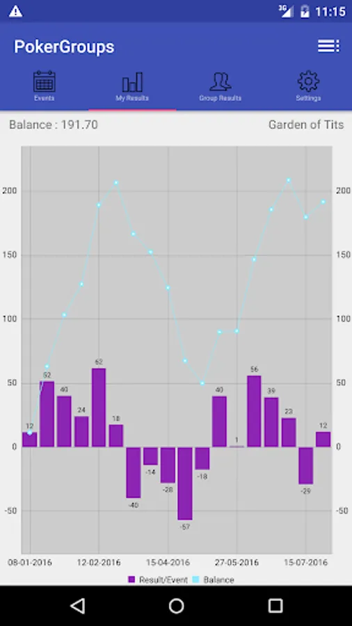 Create a poker group and let your friends join your group. Check your own restultaten or view the results