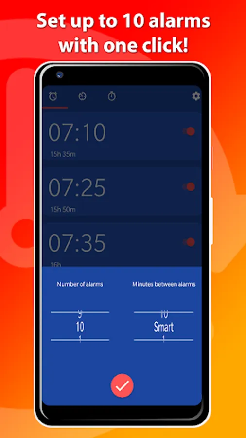 Choose for smart when setting a new alarm for automatic time difference between multiple alarms.