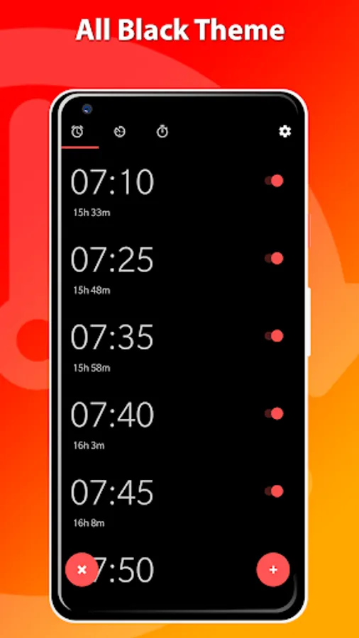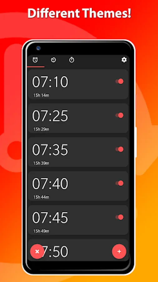 Choose from four different themes to customize your favorite alarm app. We also have a black theme for AMOLED phones, so you can save battery while using this smart alarm clock.