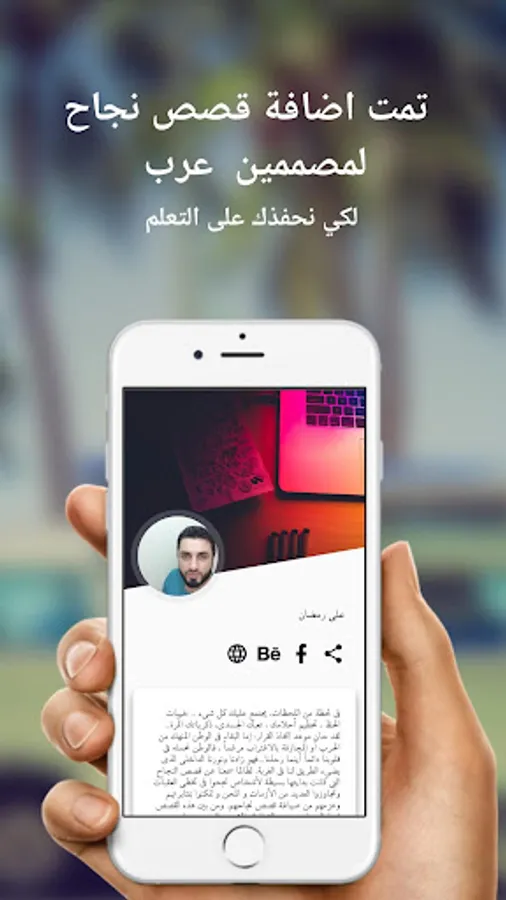 - The application contains a section for success stories of Arab designers to encourage you to learn design.
