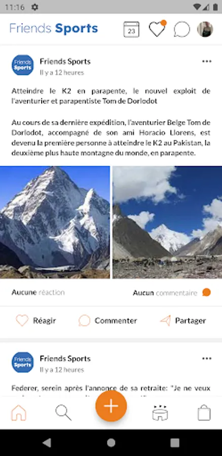Friends Sports is a social network application that focuses mainly on sports. When registering, the user indicates the sports areas that interest him/her, as well as the users he/she wishes to follow and publications related to his/her passions are then automatically proposed.