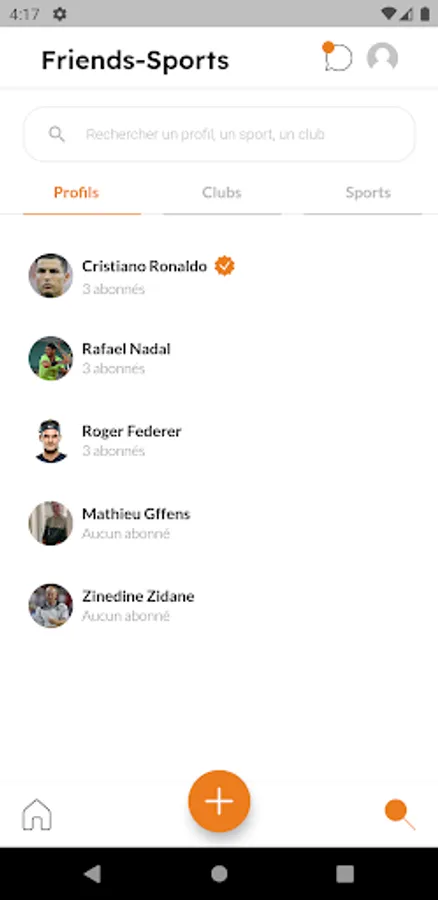 The user can then search for new users or clubs, start conversations with its friends and try to expand its professional and/or amateur network.