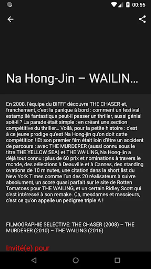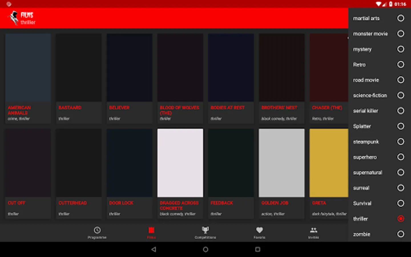 Get easy access to all information about movies running at the Brussels International Fantastic Film Festival (BIFFF).