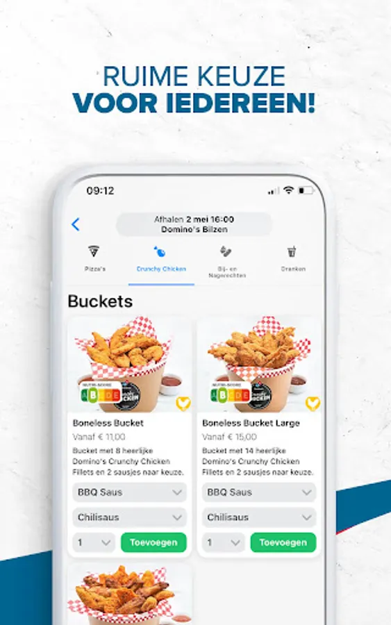 You can’t make a choice in the menu? With ‘Half Half’ you select 2 pizza flavours on 1 pizza.