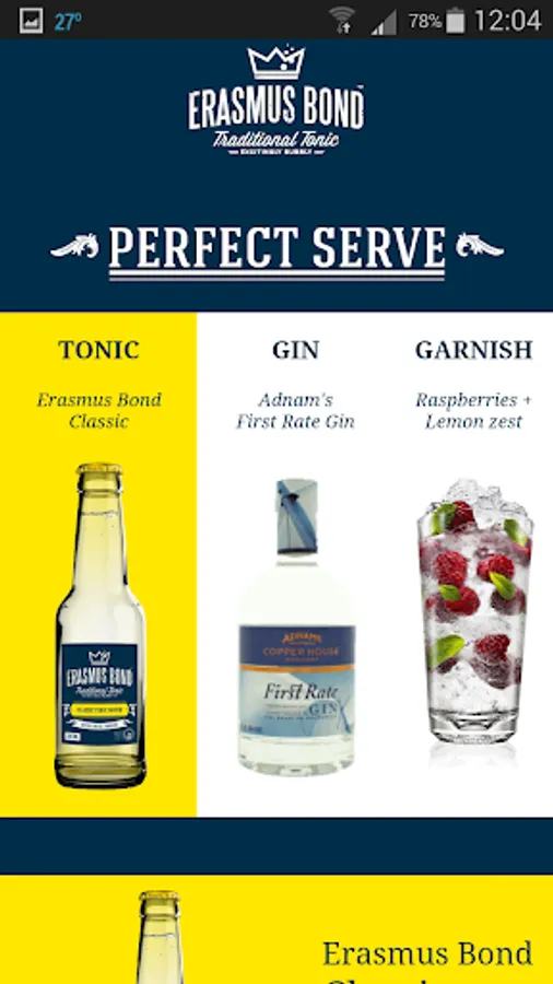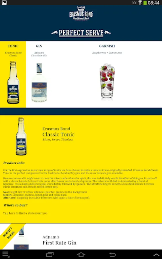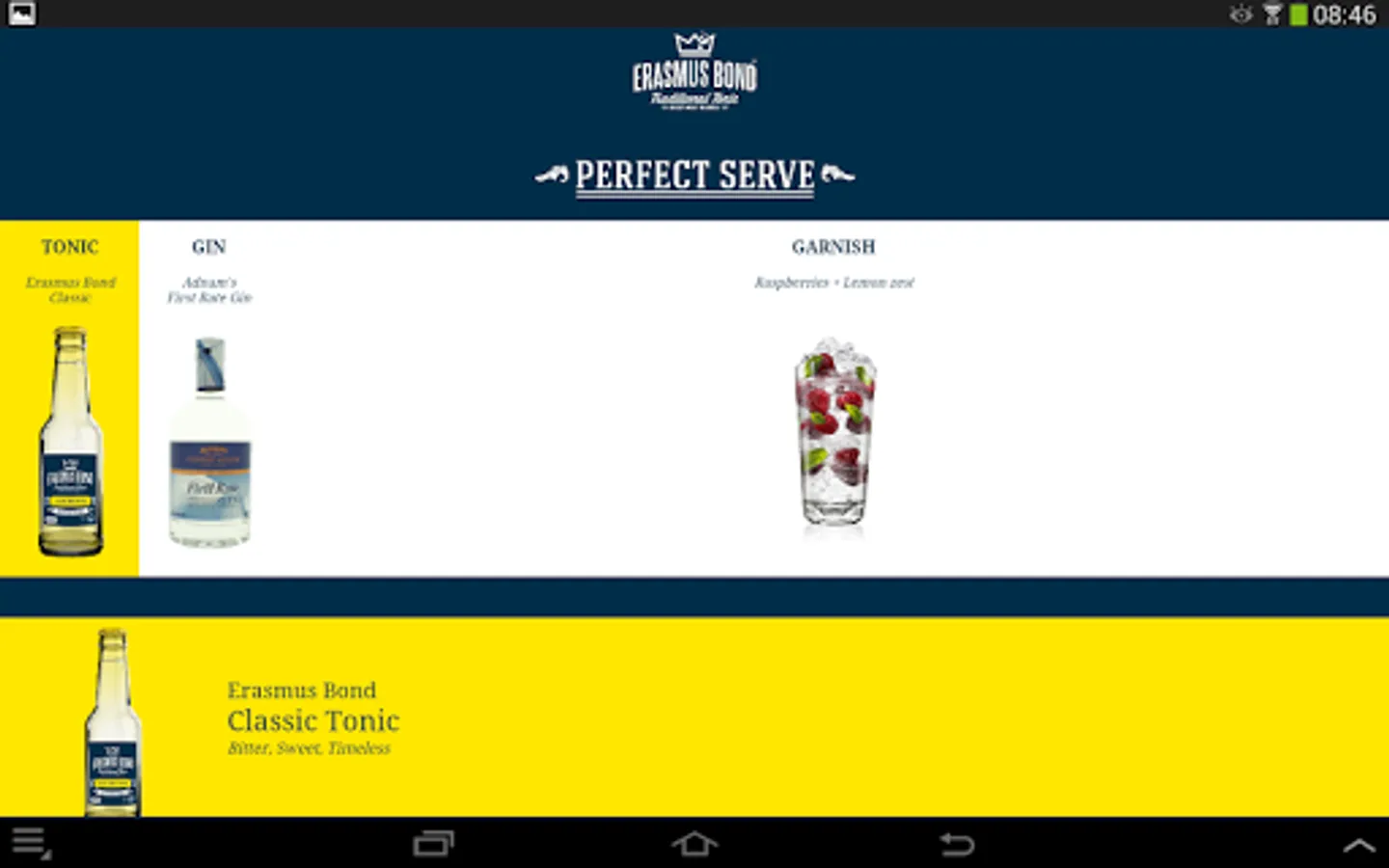 Now you can use our very own Erasmus Bond app to see if your gin is known in our database of over 200 different gins. If we know it, we will present you with a Perfect Serve, using one of our three tonics and an appropriate garnishing suggestion!