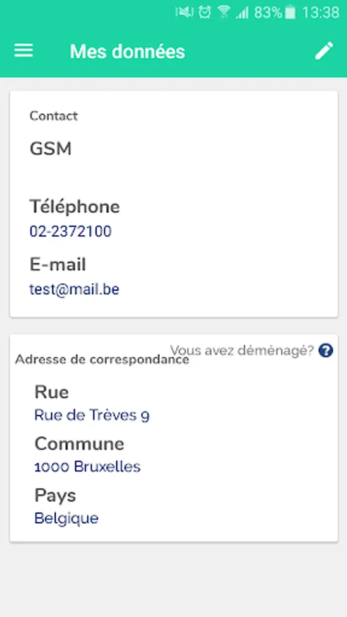 Here you will find information about your situation that you can change if necessary: mobile phone number, telephone number, e-mail address.