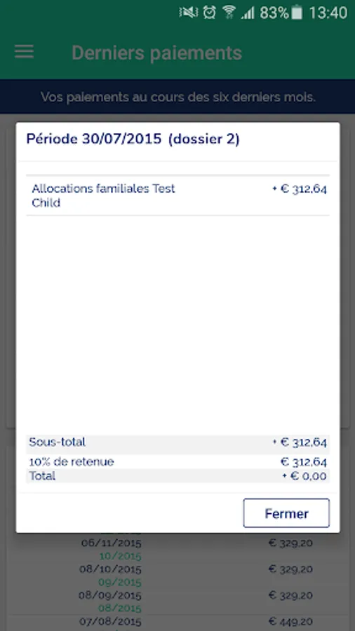 As a recipient, you can quickly go over your payments (dates and amounts) in the last six months. You can also download your certificates in PDF format on your smartphone.