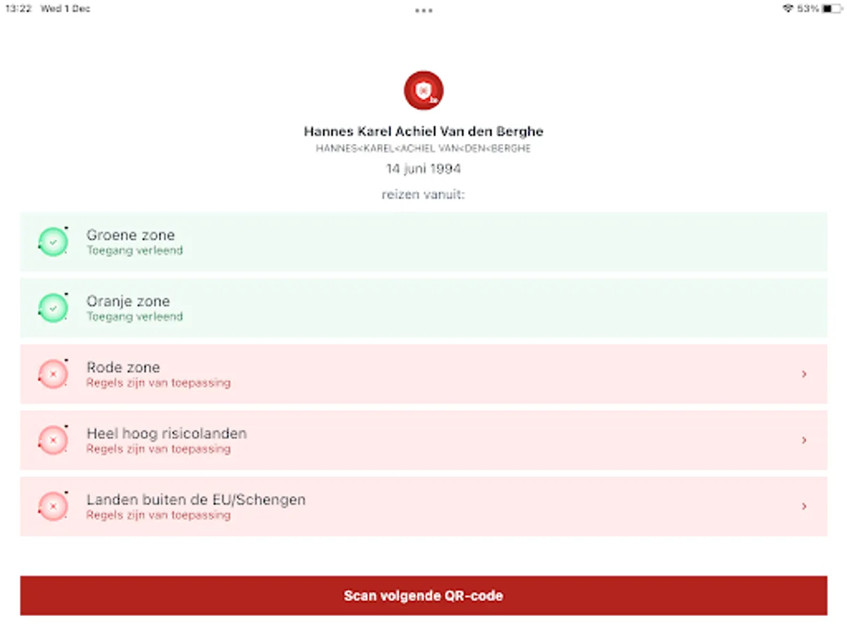 Belgian Covid passport scanning app. Verify integrity of the certificate. The application from the Belgian government enables you to scan, read and verify QR codes containing European Health Certificates.