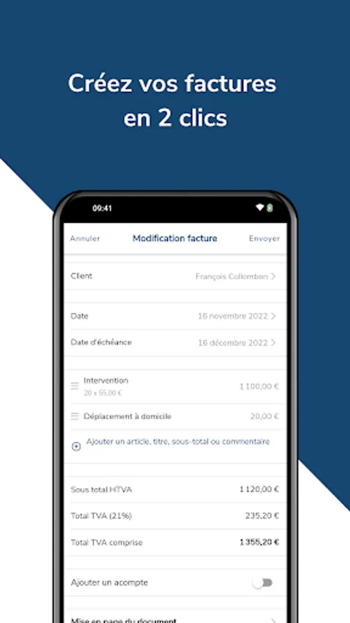 MonComptable app will revolutionize your daily life as an entrepreneur: invoicing, collection of documents, cash forecasting, dashboards, etc.