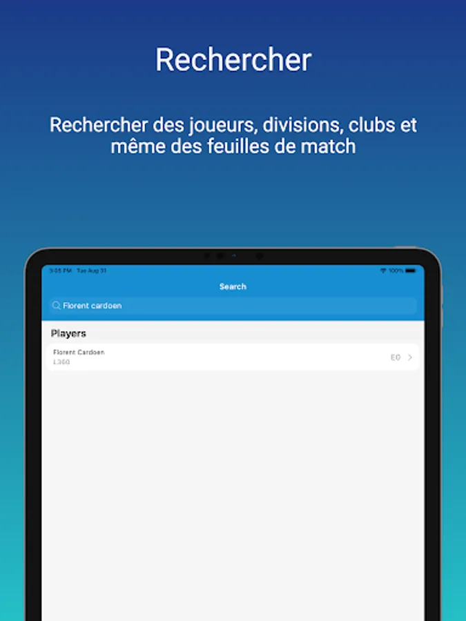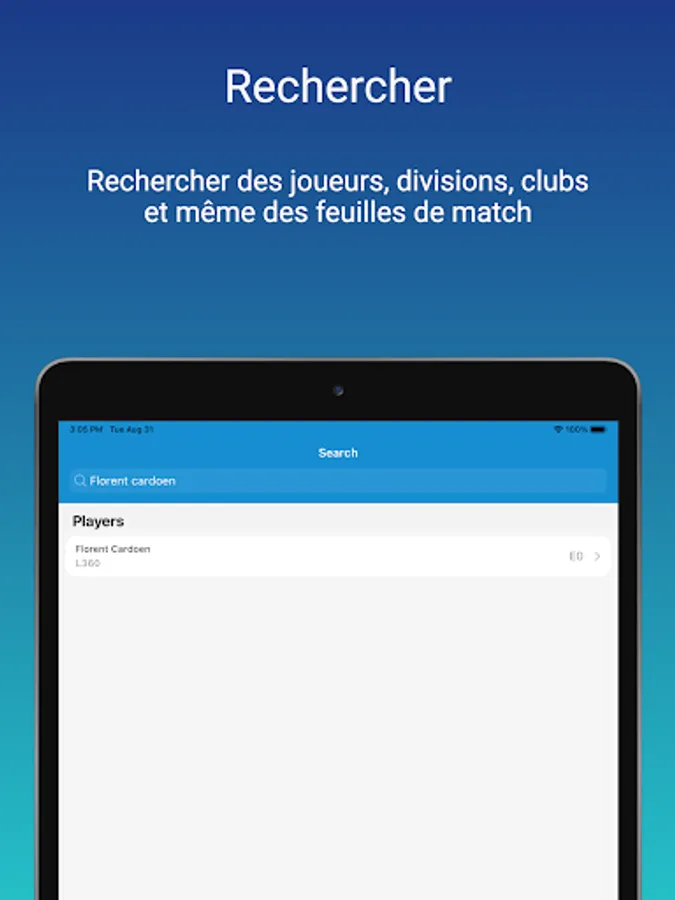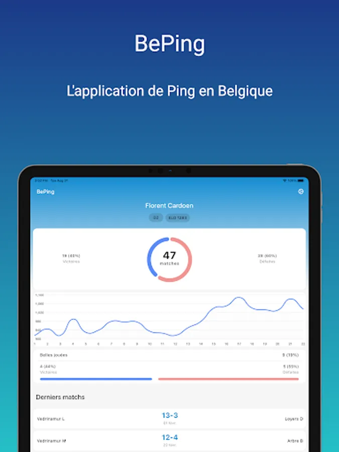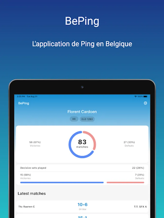BePing allows you to obtain information quickly related to your matches or your table tennis club in Belgium.