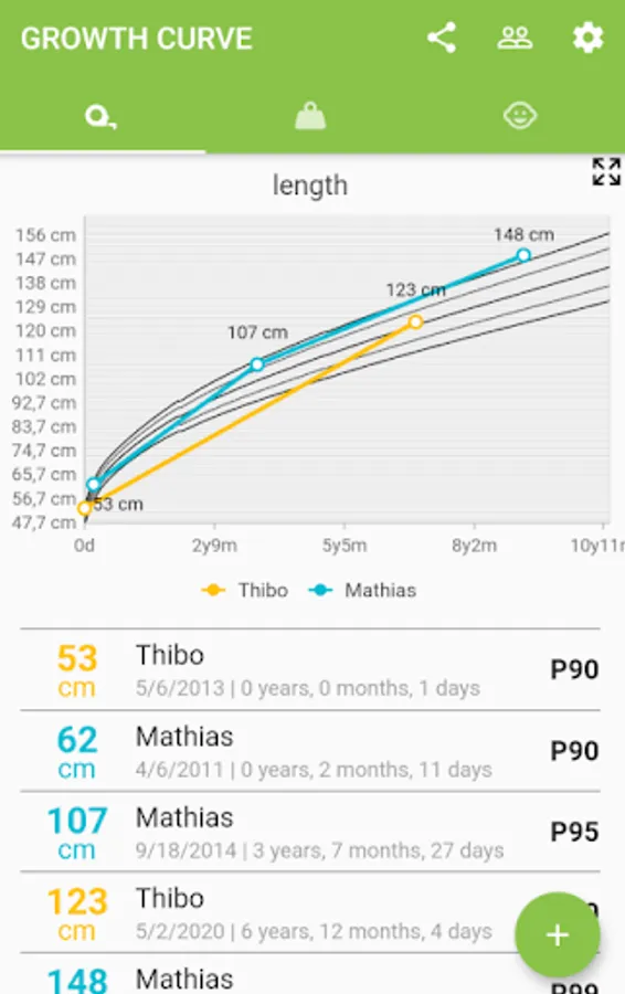 With Growth Curve, you can monitor, compare and share the growth of your children.