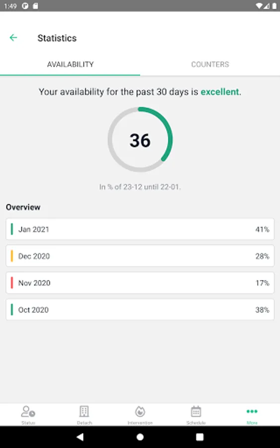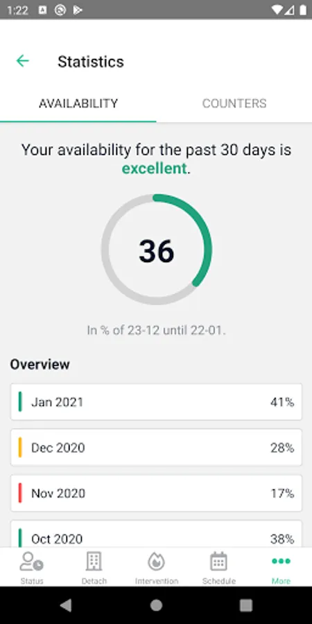The FrontForce Emergency app also gives you an insight into your personal statistics and the availability of your station. During an intervention, the app gives you all the necessary information.