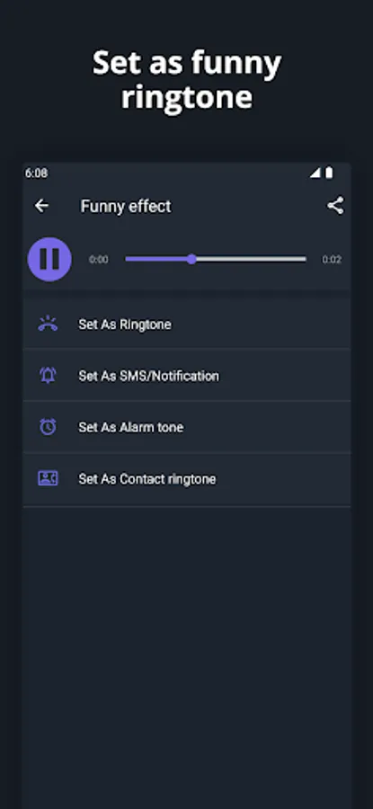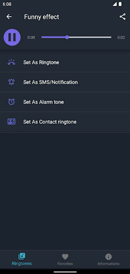 - Set as Ringtone, Contact Ringtone, SMS Notification, and Alarm.