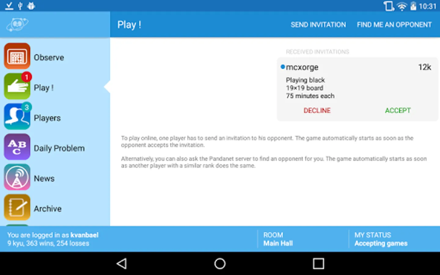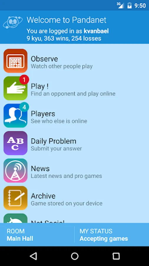At long last, a free Android-compatible Go app is now available through Pandanet! Approximately 80 thousand members from more than 150 countries use the Pandanet Go Match website and its world-class online Go Salon. Go is gaining popularity around the world as a "mind game," and now Pandanet brings it to your fingertips to be enjoyed at home or "on the go."