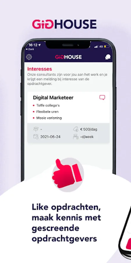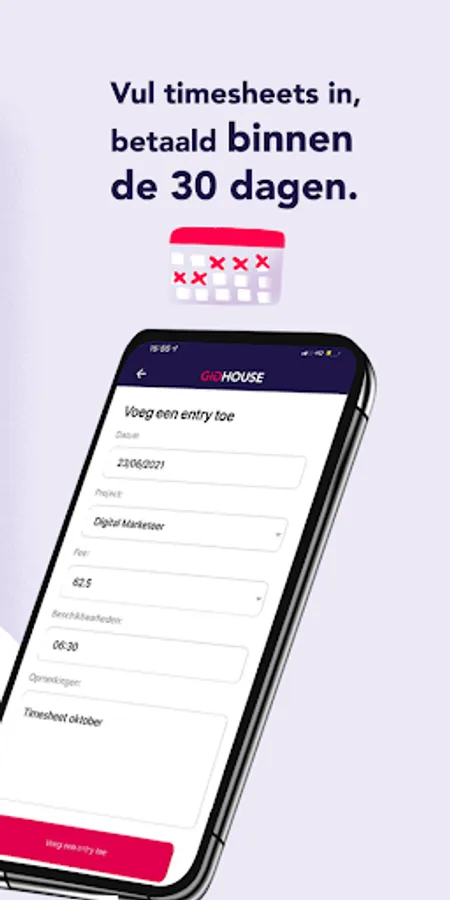 Are you interested in the project we send you? Then you can simply 'like' the project and we will introduce you to the client. Can you convince the client that you are the right freelancer for the job? Then you enter into a contract with GIGHOUSE. Enter the hours worked in the timesheets every week and we will transfer the money to your account 30 days after the invoice date. Handy, right?