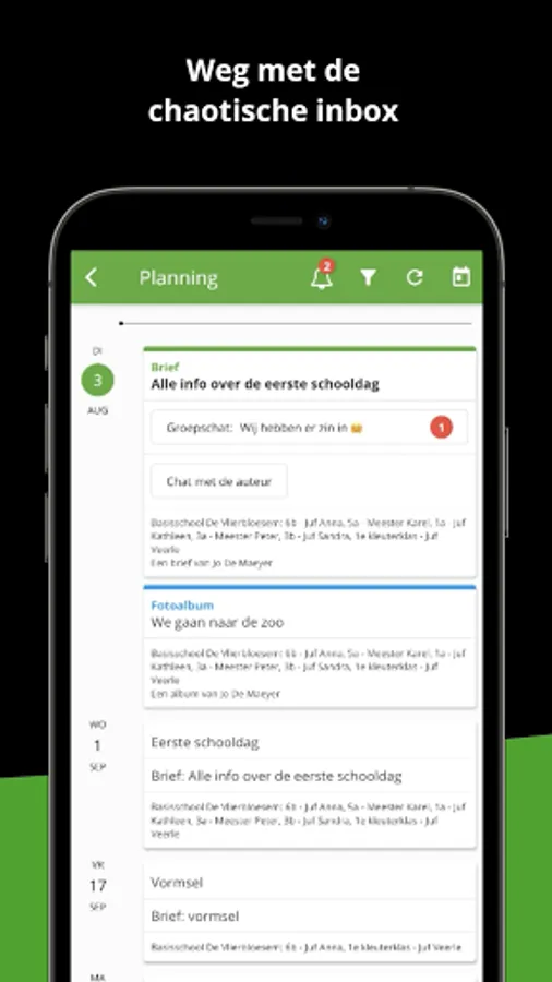 Gimme is a free app that automatically collects all information from the children on one timeline. Parents just need to follow their children's class, team or department and gimme will do the rest.