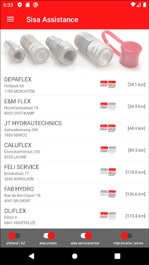 With SISA ASSISTANCE you always have hydraulic support within reach. With the app you can easily find the nearest dealer in your neighborhood and you can contact him by phone or confirm a request for support by text.