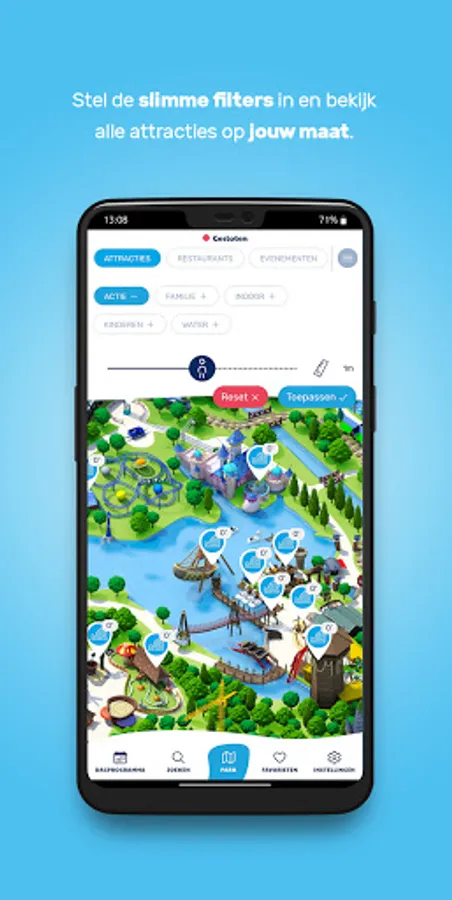 With the Plopsaland app you can find all information about the park in an instant! The app is packed with useful tools to make your visit even more comfortable. This way you always know what the waiting time is at your favorite attraction and you receive the latest information about shows, opening hours and promotions via push messages. In addition, you can filter attractions based on the size of your child, your favorite figure or the type of attraction.