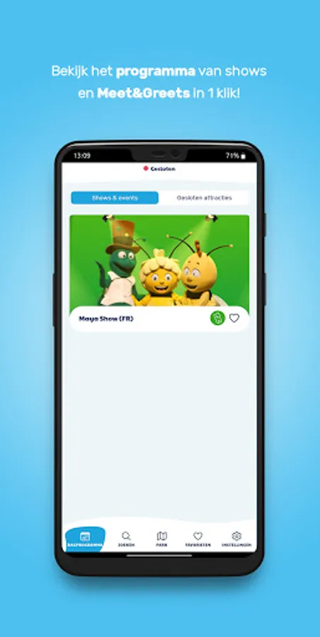 The official Plopsaland app is your guide to a successful visit to Plopsaland De Panne. In the app you will find current waiting times for attractions, starting times for shows and meet & greets and practical information about the park. In addition, you will receive a push notification when your favorite show is about to start!