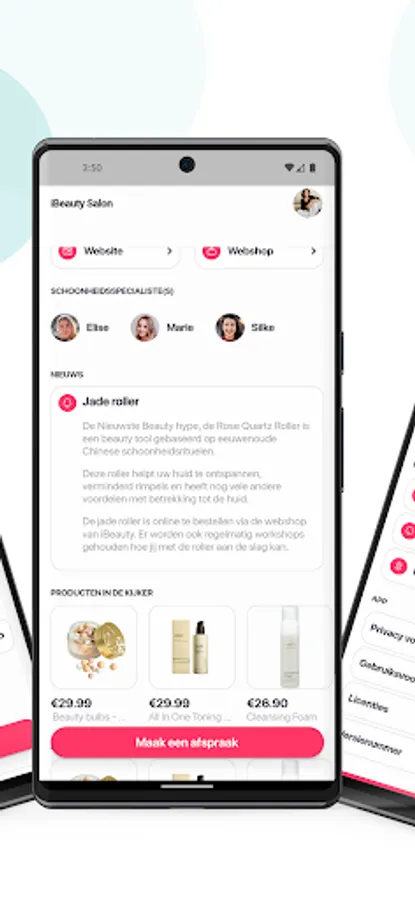 Our app also offers a direct link to the salon's website and webshop. This allows customers to easily find all the information they need about the services and products available in the salon. They can view prices, view offers, and read reviews from other customers to better understand the salon and its services.