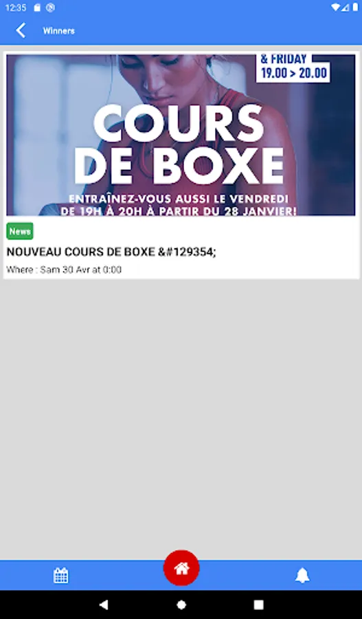 Thanks to this new application, you will be able to access all your club's activities online. Infrastructure reservations, registration for courses, courses or sessions, viewing of news and upcoming events. Always be kept informed of these activities thanks to notifications!