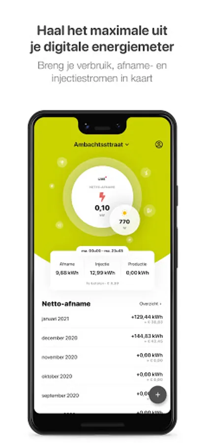 With the iLusmart App you get the most out of your digital energy meter. The App maps your consumption and the offtake and (possible) injection flows, if you have solar panels, to and from the grid based on data from your digital meter. In this way, the App not only offers you interesting insights into your consumption profile, but also provides advice on how you can save on your energy bill.