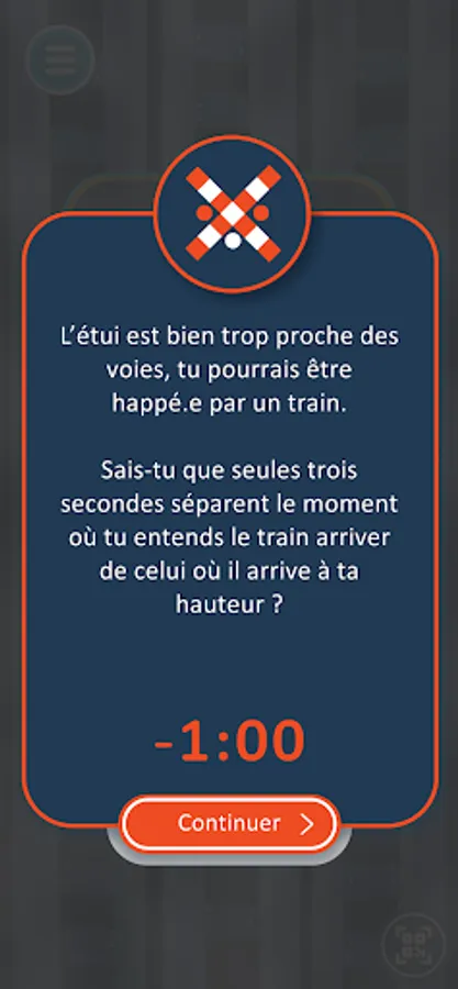 This game is part of the educational program for 12-18 year olds. It allows everyone to perceive their behavior on and around the tracks and to understand the rules to follow.