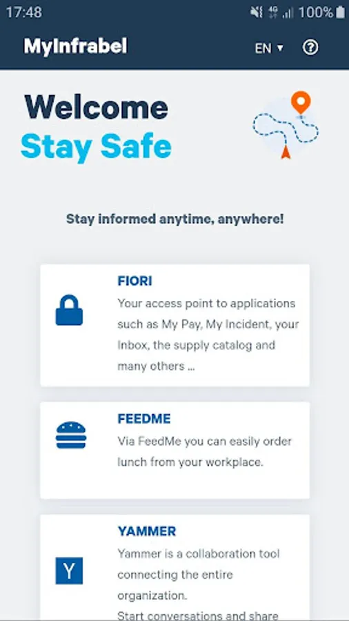 MyInfrabel is an application intended for Infrabel employees and any on-site visitors. It has the objective of facilitating access to certain applications and to maintain the link with the Infrabel community during this period of lockdown.