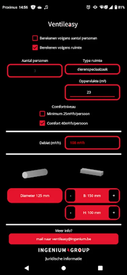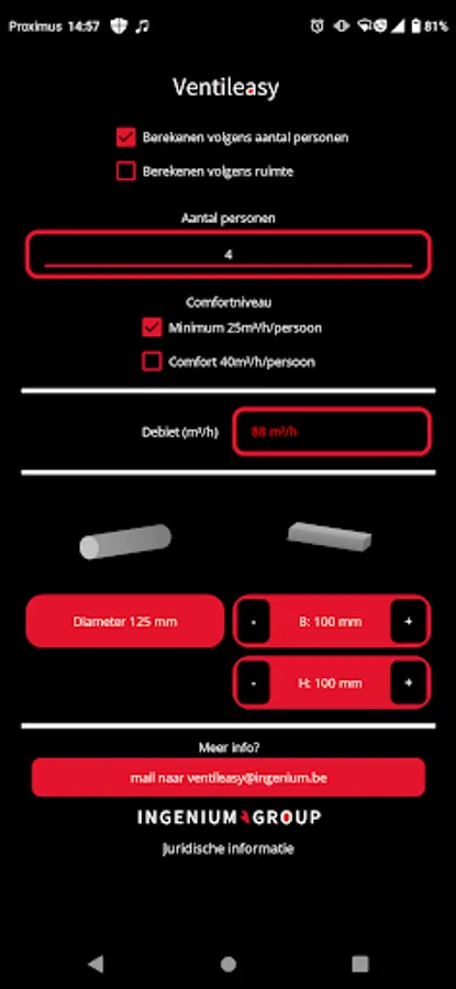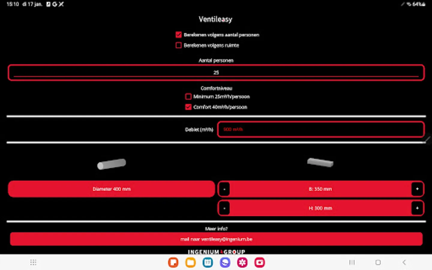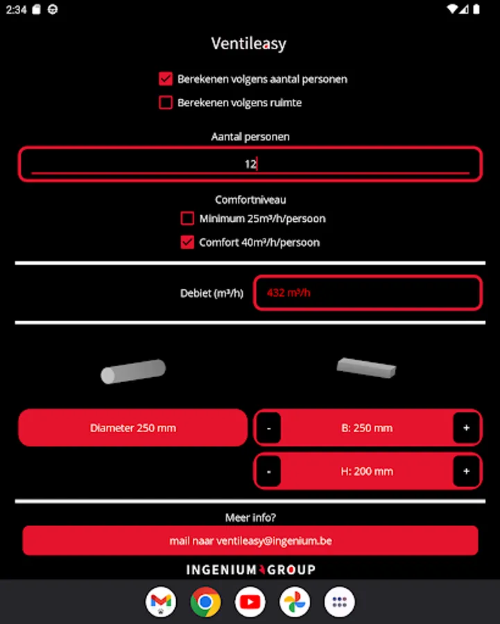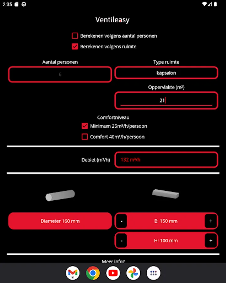 4. the app gives you the size of the ventilation ducts, which you can then adjust as desired