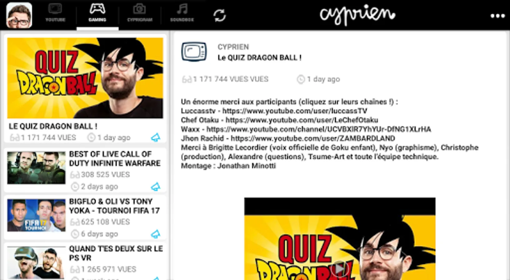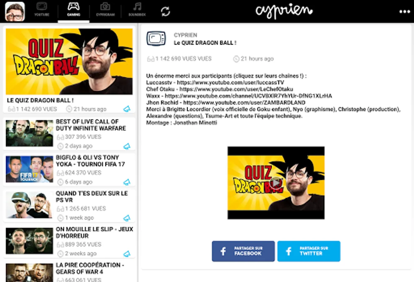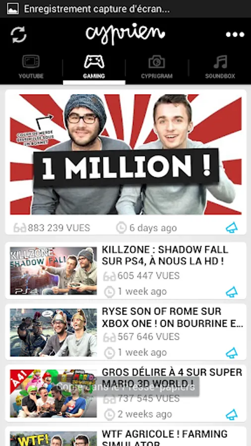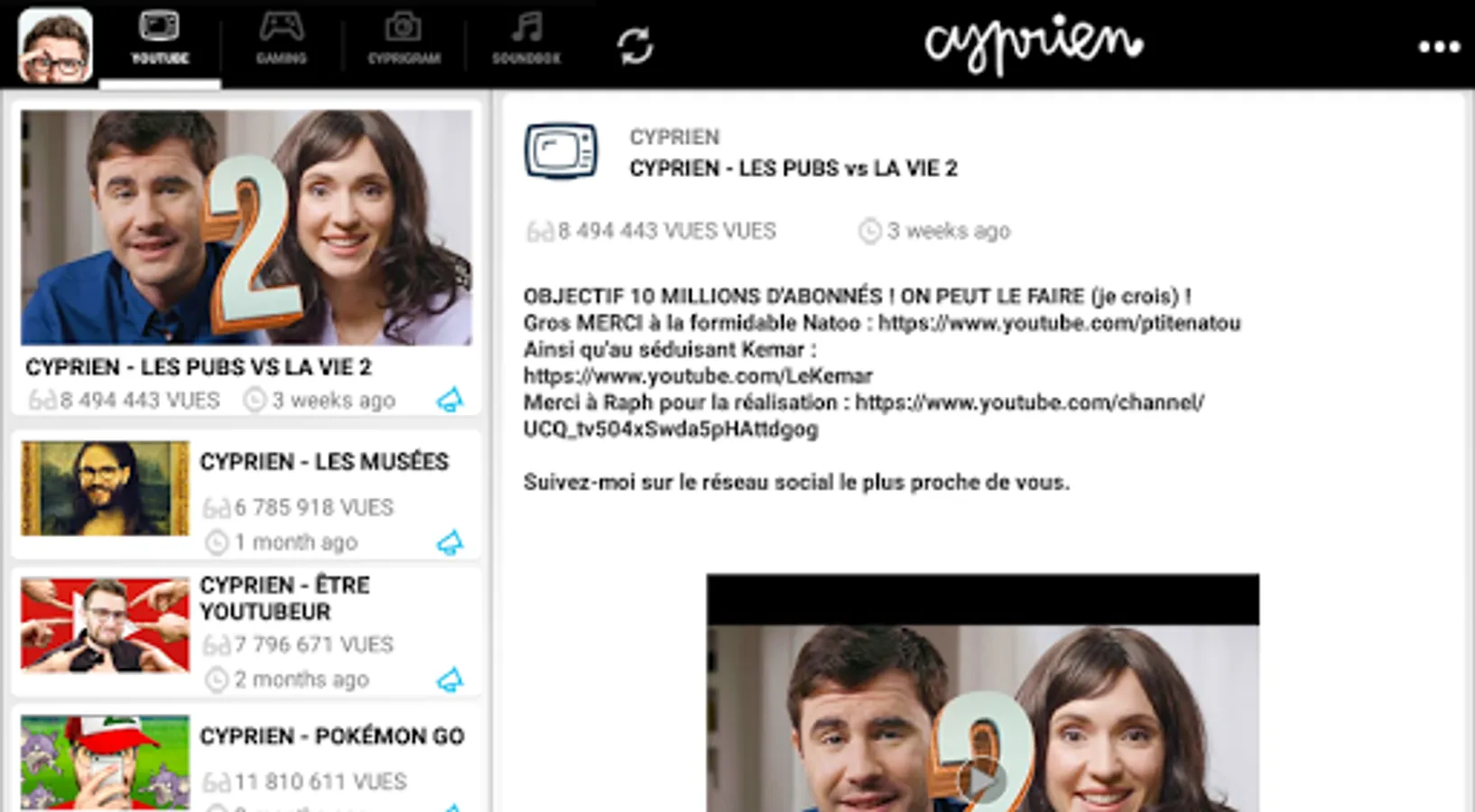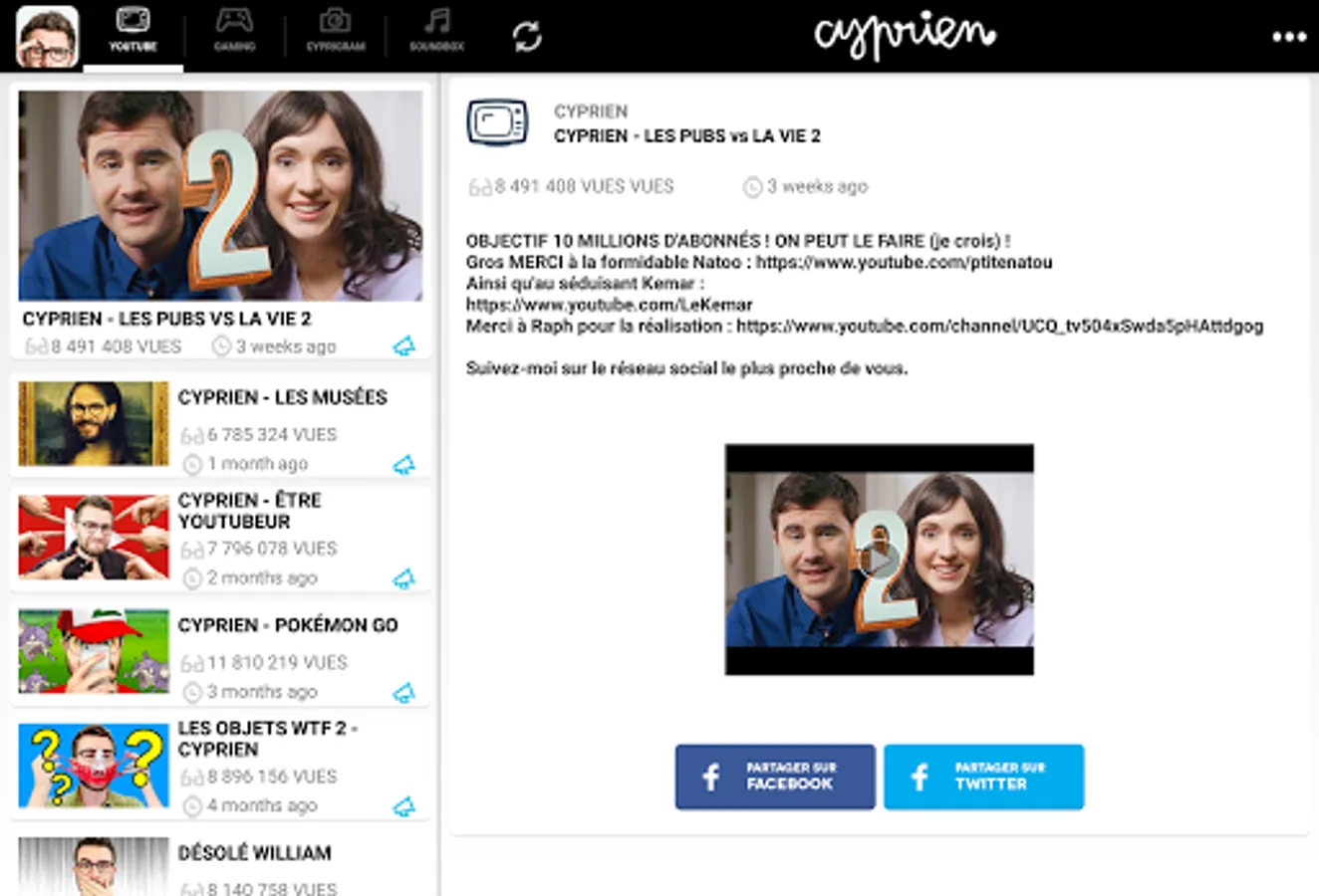 ● Look at all my videos, and even my videos Cyprien Gaming