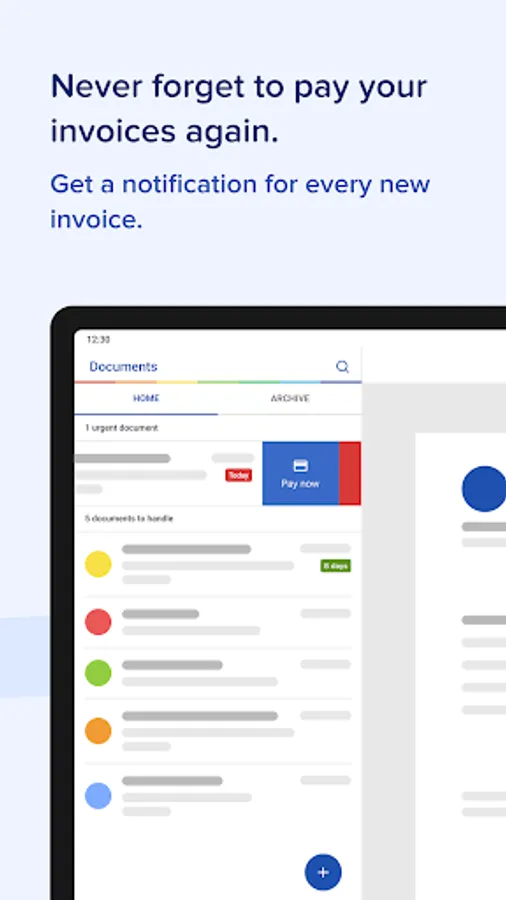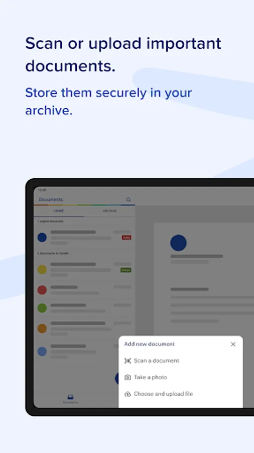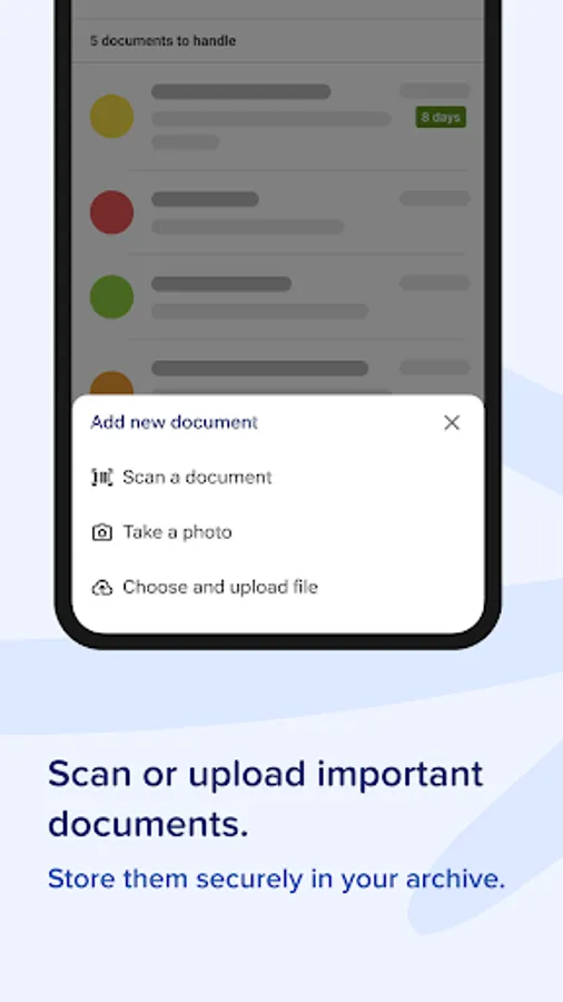 - Add important documents yourself (upload from your mail, cloud or internal storage,...)