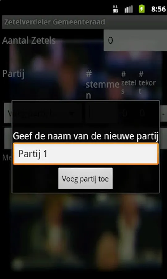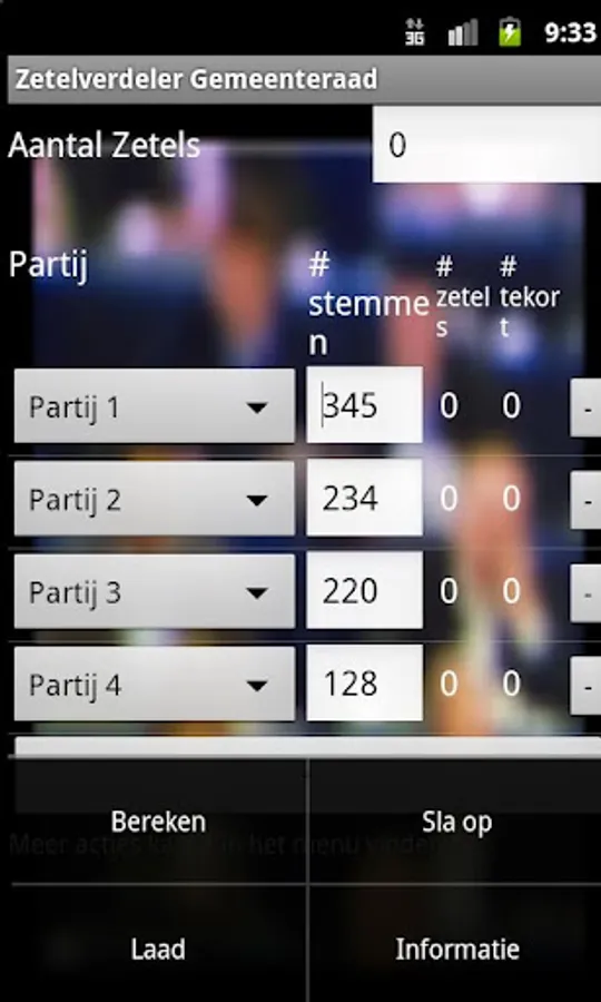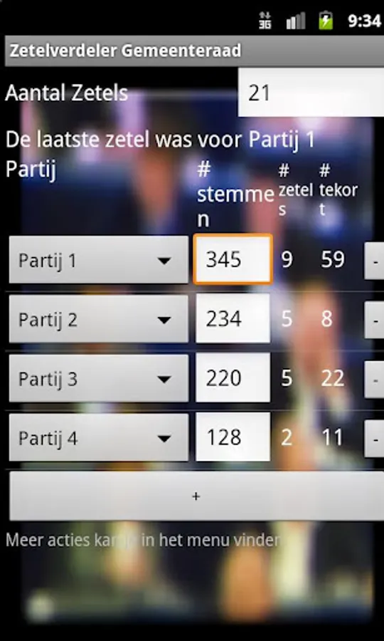 This app calculates the number of seats for the outcome of local elections in Belgium. Which party gets the last seat and how many votes each party is short of another seat? This app provides insight into the effects of votes gain or loss for the number of seats each party.