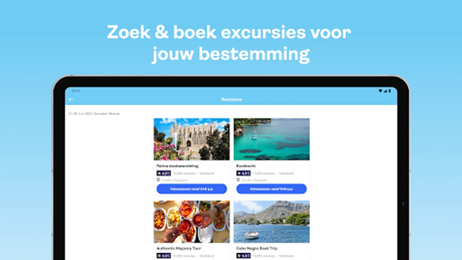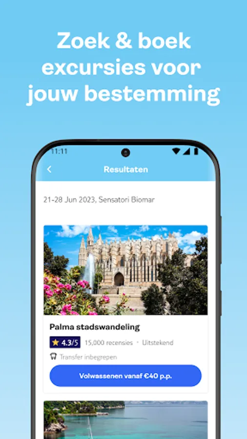 Via the app you can easily book your excursion or activity from TUI Experiences and Musement from the palm of your hand - all excursions available to you are loaded into the app. Select your TUI Experience from the list of available dates and times and consult all the necessary information. Once you have confirmed and paid for your trip, your tickets will be displayed in the app and also emailed to you.