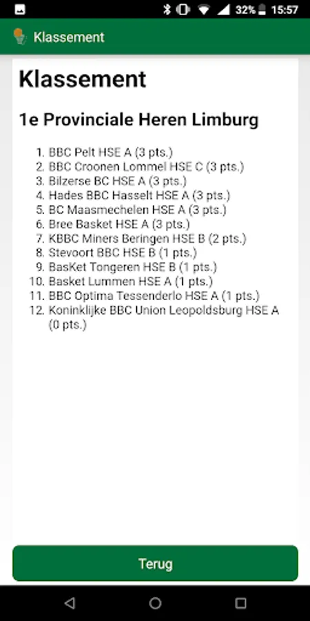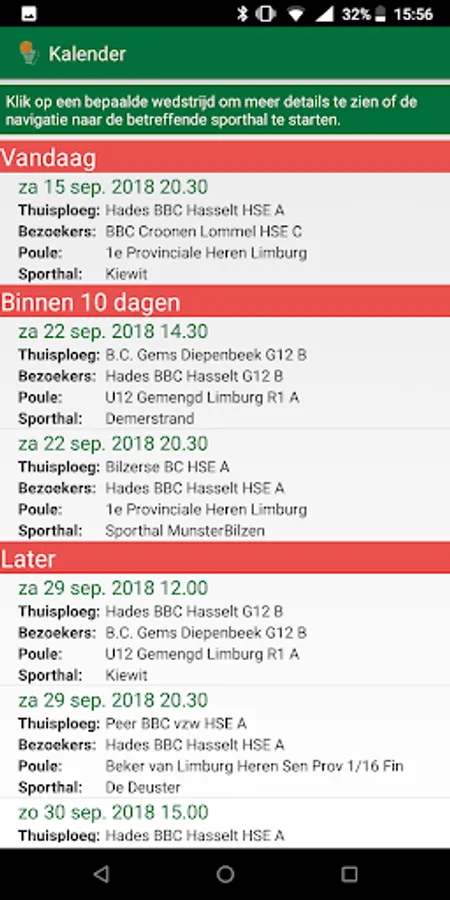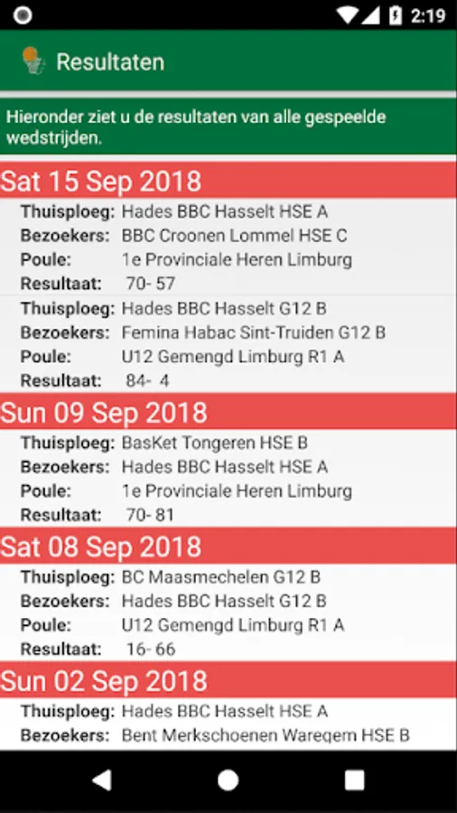 With this app you can consult the calendar and the results of Hades BBC. At the calendar you have the possibility to also consult the ranking, past results and statistics.