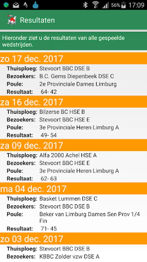With this app you can consult the calendar and the results of SBBK. In the calendar, you have the possibility to consult the standings, past results and statistics.