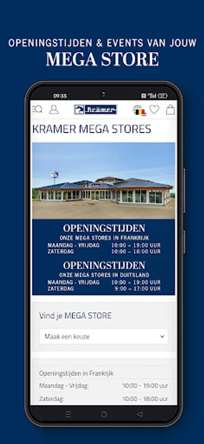 - Select your personal MEGA STORE and find out immediately which sizes are available and which events and promotions are available.