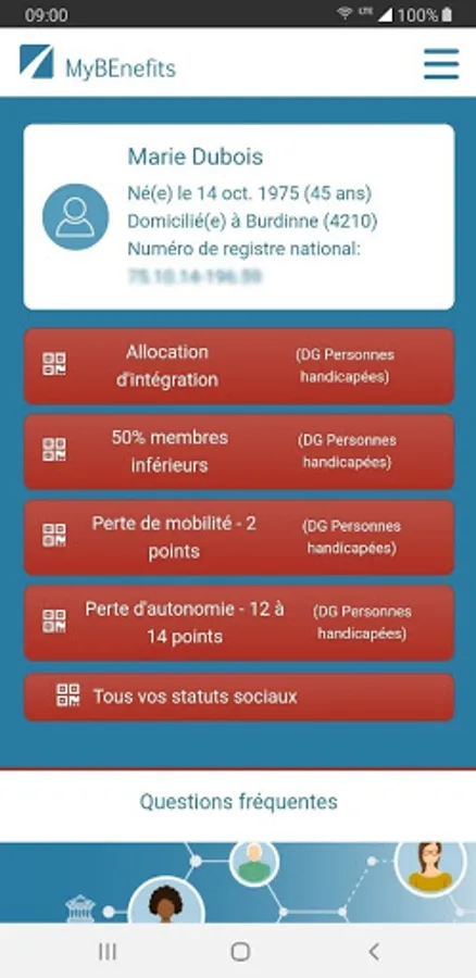 As a citizen, the application allows you to freely and securely communicate your social status (increased intervention, integration income, etc.) to an organization that grants benefits. After identification / authentication, you will see your national register number and the list of your social status currently associated with obtaining an additional right appear on the screen.