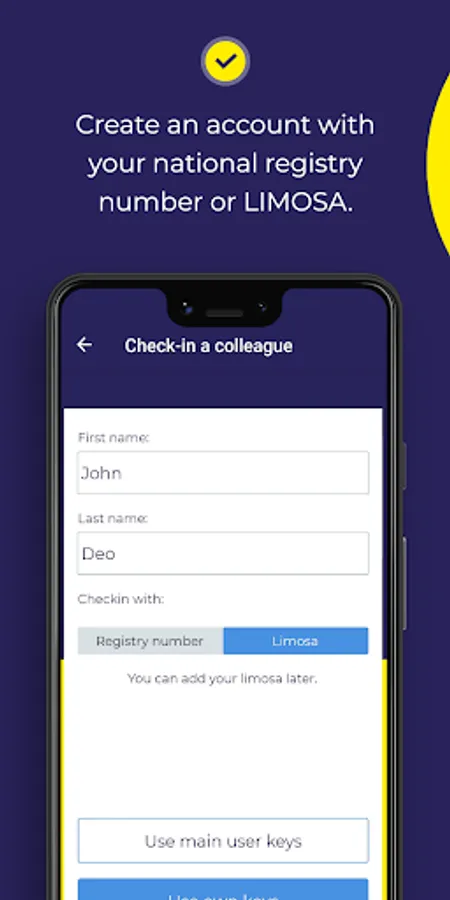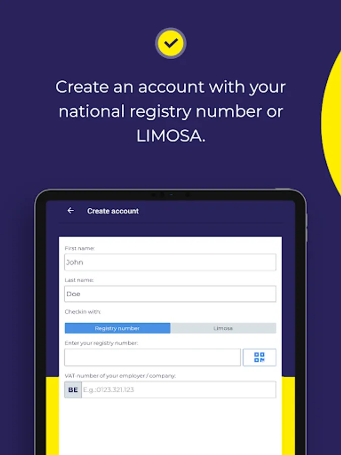 You easily check yourself in by creating an account in the app on your smartphone using your national register number or LIMOSA number (for foreign employees). You can also check in colleagues. Once you arrive at the site you can look it up in the list of locations. There you can easily and quickly register your check-in and you are legally all set.