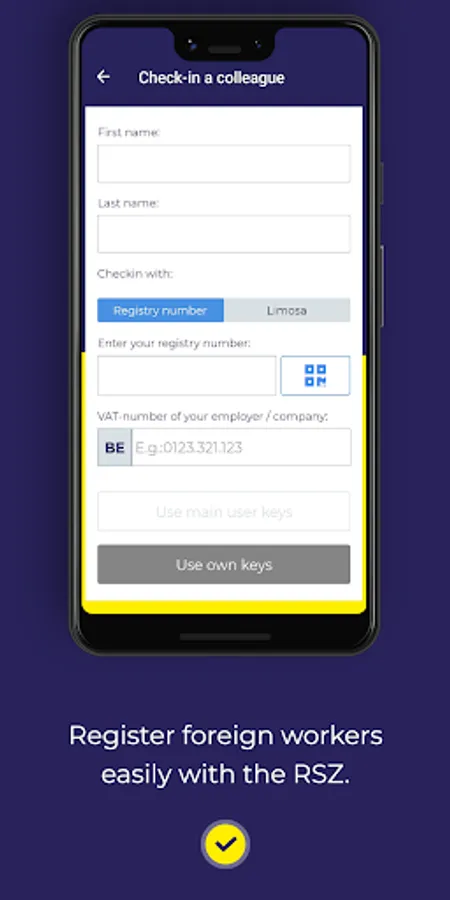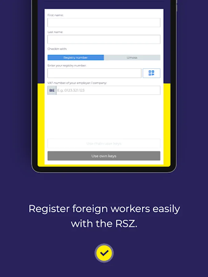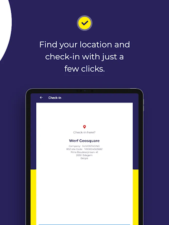Not only employees, but also third parties such as subcontractors, can check-in so that they are registered for that day with the RSZ in Belgium.