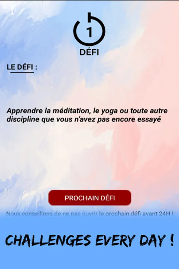 Come and discover the 31-day Challenge app! This app will give you 31 different challenges to overcome to get out of your comfort zone! Be happier in 31 days! This application is available in French, the challenges are simple but increasingly complex!